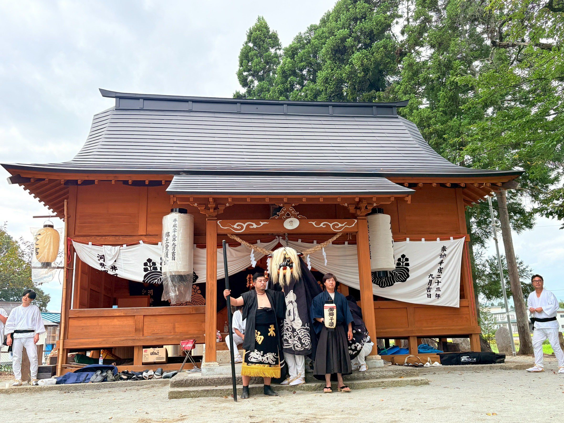 天喜年中(1053~)に源頼義が造ったといわれています。鎌倉の鶴岡八幡宮を勧請し、館に建て、若宮八幡とよばれました。明治42年(1909)に三嶋、飯綱、羽黒を合祀しました。例祭には演芸、芝居、カラオケ大会でにぎわい、獅子舞と神輿が地区内を巡ります。
