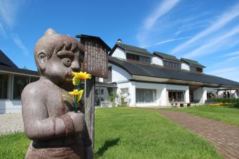 広介の遺品、生原稿などが展示されているほか、童話ルームでは、マルチスクリーンで上映される「ないた赤おに」や読書ルーム、喫茶コー..