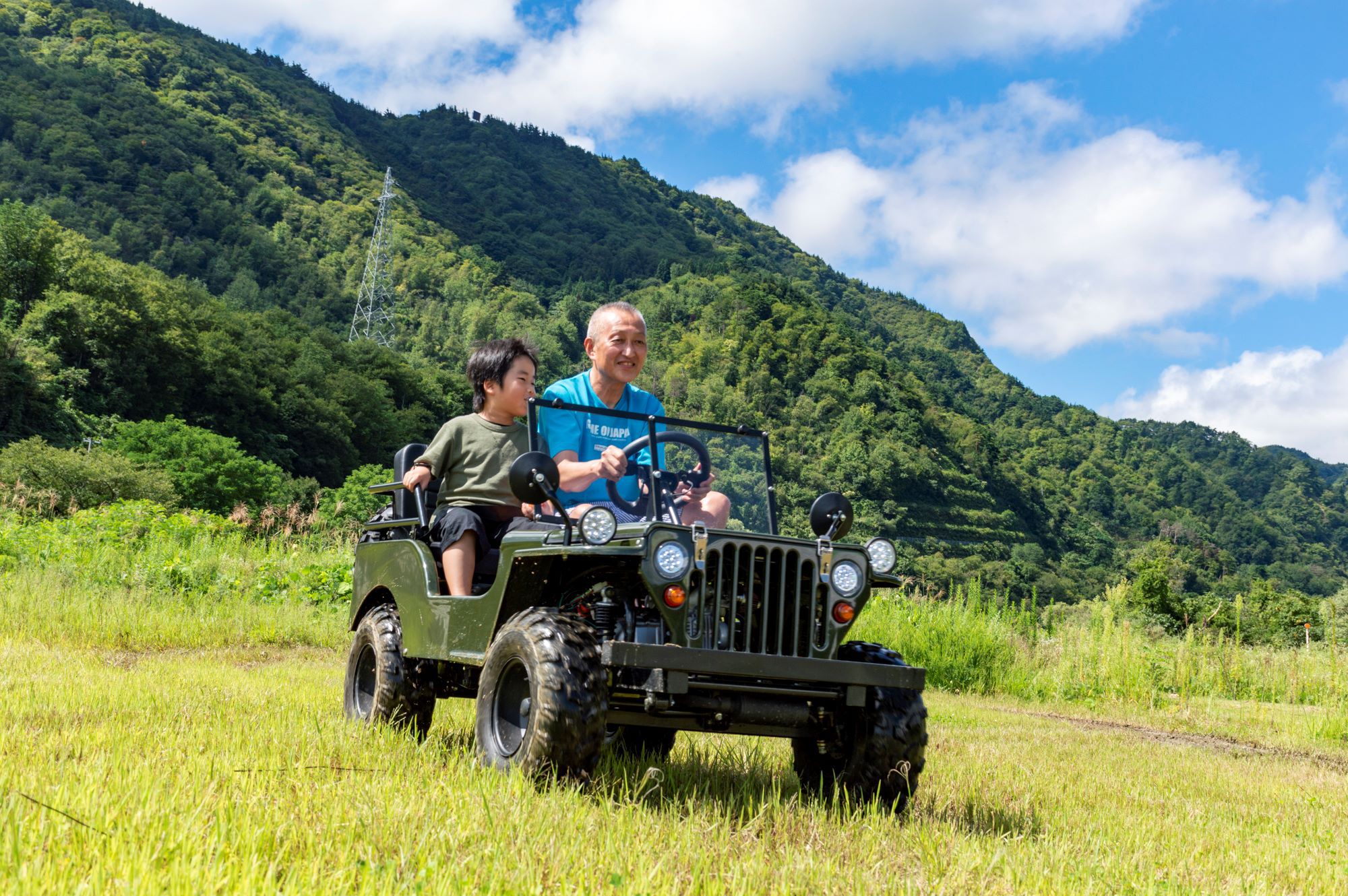 丸太や連続ウェーブ、アップダウンを含む本格オフロードコースを、2人乗りバギーで体験! 地元の間伐材や災害残土を活かし、スタッフ手作りで毎年進化中。 目玉は、石淵渓谷を一望できるロングカーブ。 川のせせらぎと緑に囲まれて、特別な時間が味わえます。 ※詳細は「やまがたアルカディア観光局」ホームページ にてご確認ください