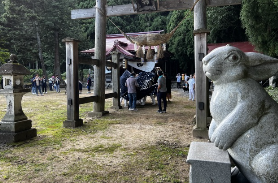 かつては、羽黒修行の医王山龍善院でしたが、明治5年(1872)に葉山神社になりました。(置賜)葉山には白兎参道があり、山頂には奥宮月山宮と羽黒宮があります。葉山神社は、この2社の里宮となっています。農業の神様として信仰されており、大宮子易神社に次ぐ社格で、21年毎の式年改築をされています。